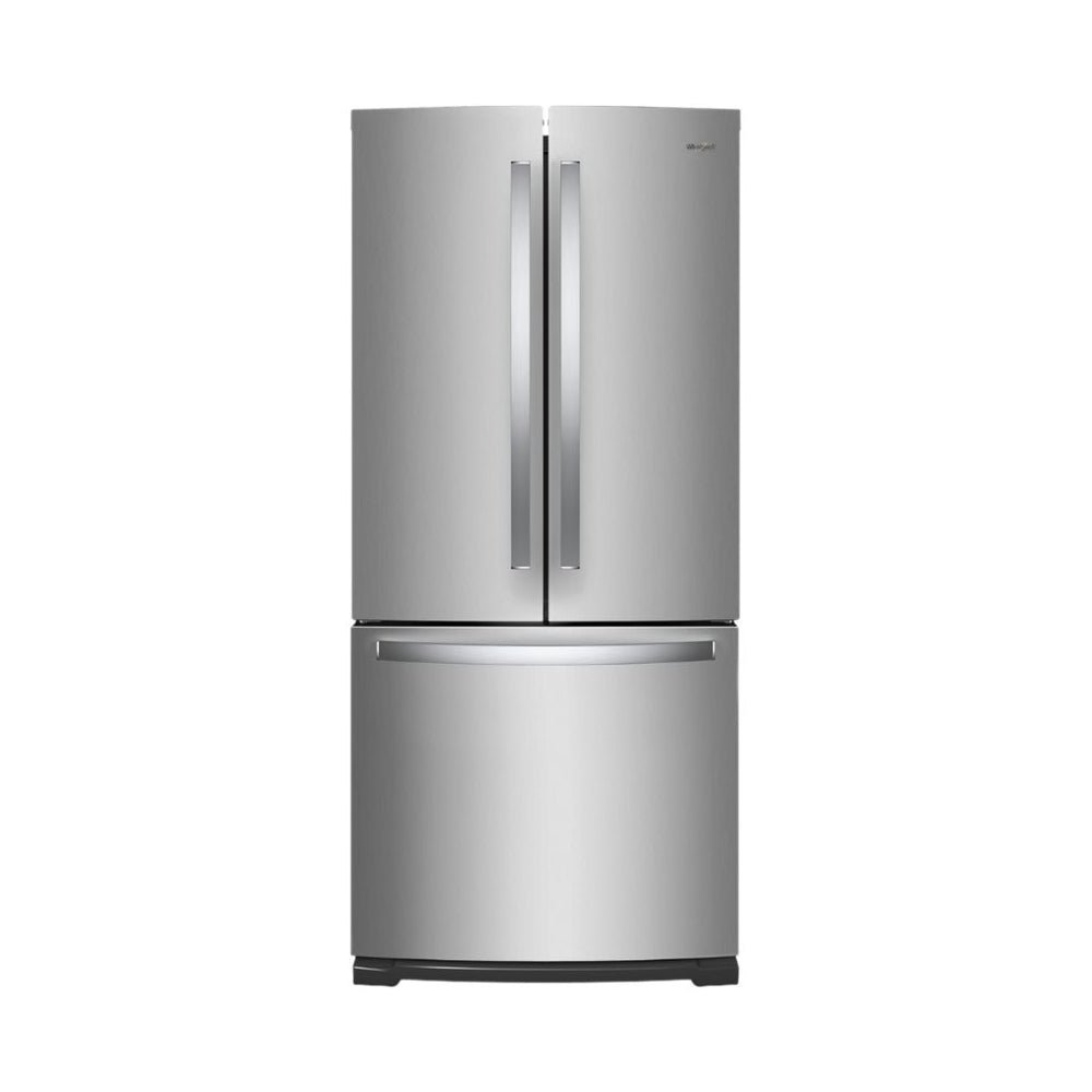 Upgrade your kitchen with the Whirlpool 19.7 Cu. Ft. French Door Refrigerator, designed for peak freshness and effortless organization. This 30-inch refrigerator features a sleek fingerprint-resistant stainless steel finish that seamlessly complements any modern kitchen. Inside, advanced temperature control technology keeps food at optimal freshness, while the FreshFlow™ air filter helps reduce odors for a cleaner, crisper interior environment. Humidity-controlled crispers keep produce fresh longer, and the removable condiment caddy adds convenient portability for your everyday essentials. With bright LED lighting, spill-proof glass shelves, a spacious bottom freezer, and a built-in automatic ice maker, this refrigerator delivers premium performance and smart organization—perfect for busy households that need reliable, efficient refrigeration.